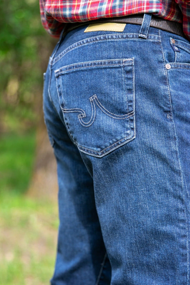 The Graduate Tailored Leg Jean for men features a classic dark wash and is cut in a slim mid rise waist with a relaxed fit at the hip to the knee before tapering at the leg opening. This men’s slim straight jean is designed in a 11oz. Japanese denim with comfort stretch for everyday wear.