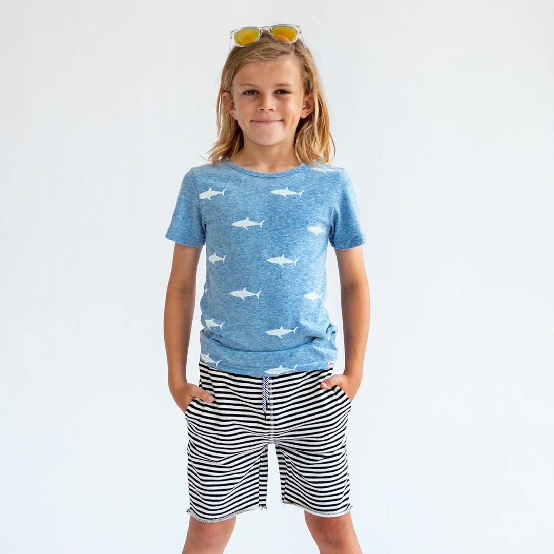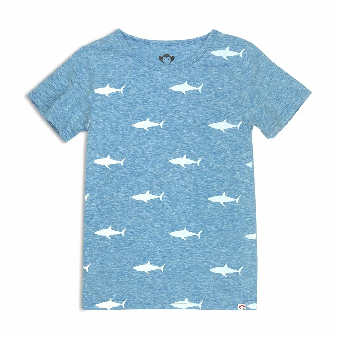 Who knew great white sharks could look so cute? This everyday classic style tee is a must have addition to his closet.