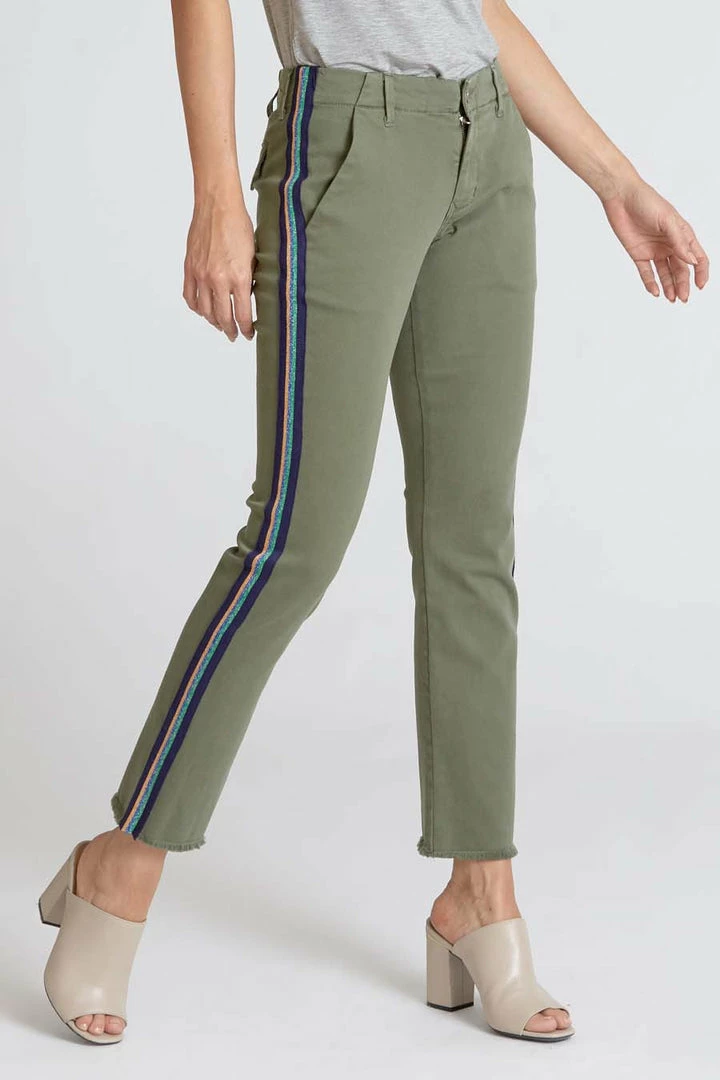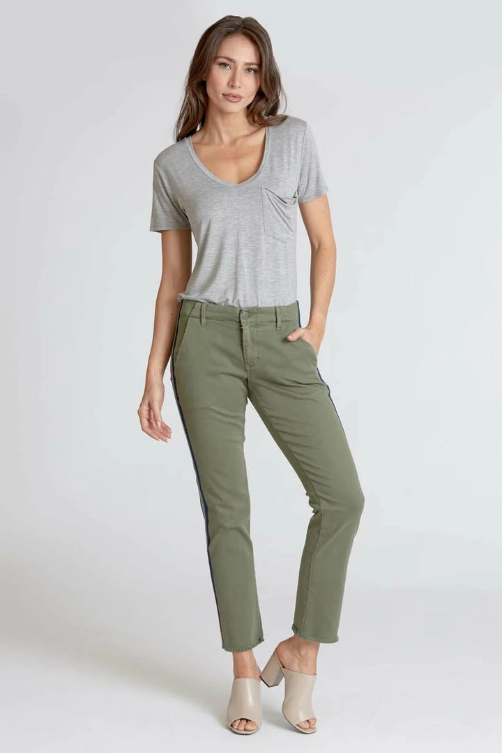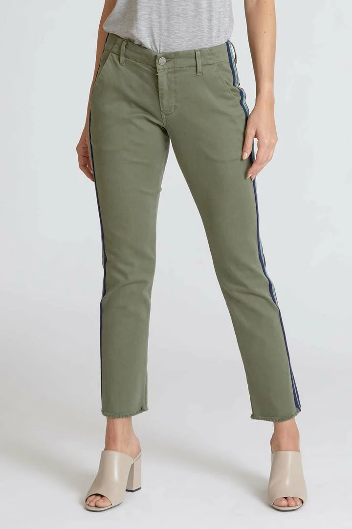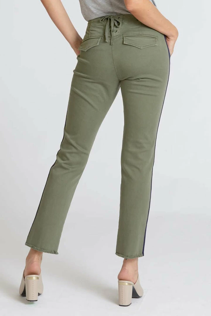 Dear John Blaire pants with fun strips down the side of the leg. ย Pants are very comfy and sporty cool! Slim straight, High-rise, ankle, side stripe w/back lace up detail.