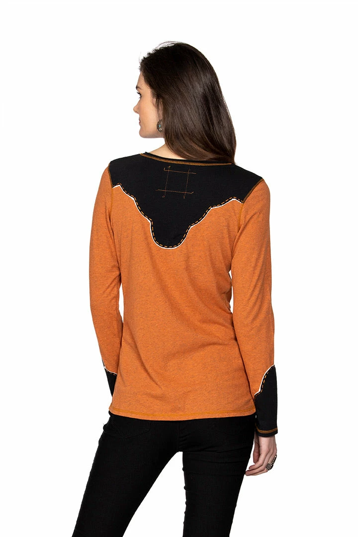 Hey there, cowgirl! You’re going to love this long-sleeve cotton top with its classic western font “Honky Tonk Cowgirl” paired the contrasting western yoke and cuffs. Sometimes you just want a top that’s soft and simple and makes you wanna say “Yeehaw!”