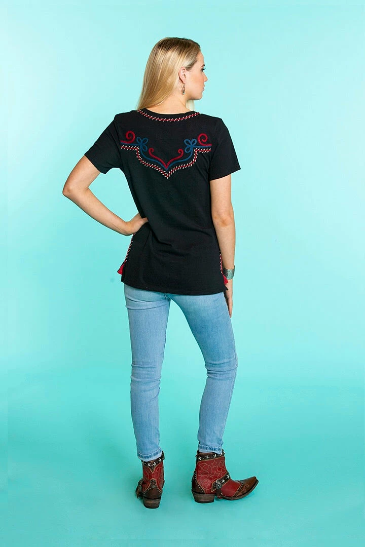 Double D has added their creative touch on the classicΒ henley rodeo style t-shirt. This tee is detailed withΒ embroidery, contrast placket, & contrast lacing. Slim Fit.Β