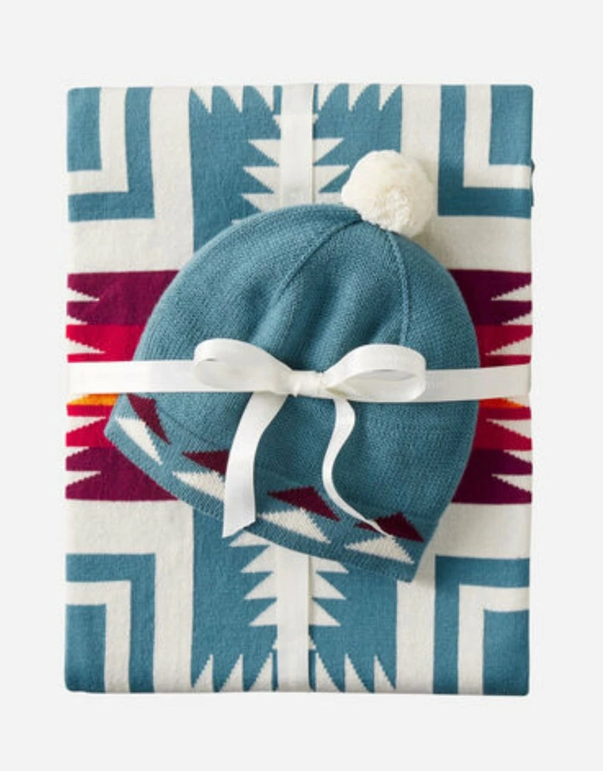 Cuddle your new arrival with this soft, machine-washable cotton knit blanket, with a matching knit beanie for your favorite little head. A lovely, sure-to-be-appreciated gift. Cap fits 6-12 months.