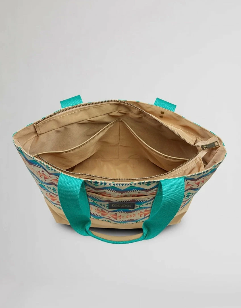 A coated canvas tote durably constructed to withstand the rigors of traveling or daily commuting. Matte PVC coating resists dirt, stains and water, while a wipe-clean lining protects the interior. Zip closure and multiple interior/exterior pockets. Double handles. Pattern placement may vary.