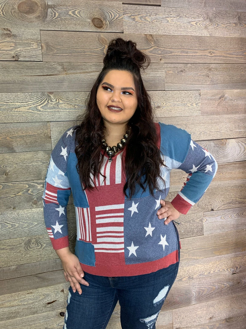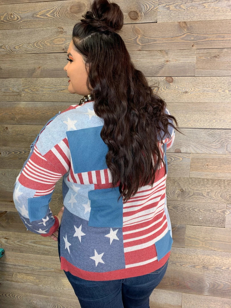 Beautiful patriotic sweater to wear with your favorite denim or white denim jeans or shorts!!!